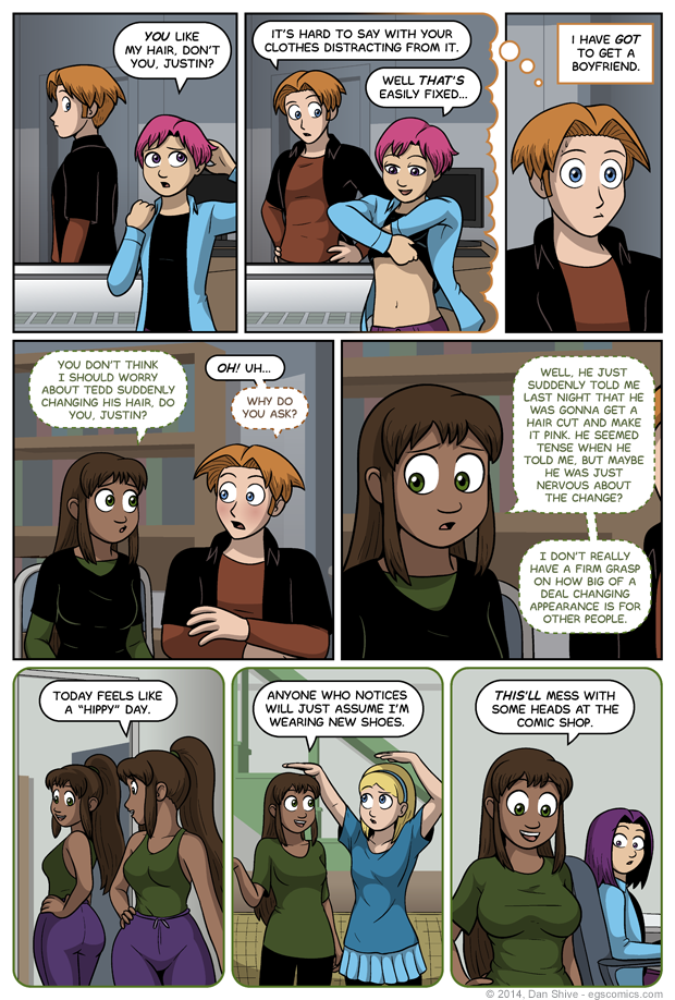 Panel six is somewhat inspired by a previous comic that had Grace describe herself as "hippy" instead of "hippie", a mistake I've surely corrected by IT STILL SAYS "HIPPY" WHAT THE HELL ME?