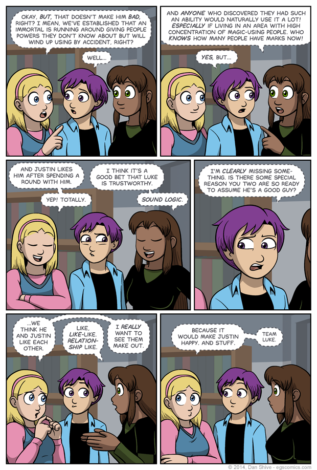 I should probably note that it's entirely possible that there are a whole mess of factual errors in the preceding paragraph and I have never actually read Twilight--er, that which must not be named. "Team Edward" and "Team Jacob" were a thing, however, which sort of baffles me. I mean, I get the basic idea, but... It's a team, now? Was everyone on the team courting Bella, and Edward and Bella were like the quarterbacks? Were they each a team unto themselves, and those supporting them like cheerleaders? I'm just trying to understand the rules of this particular sport.