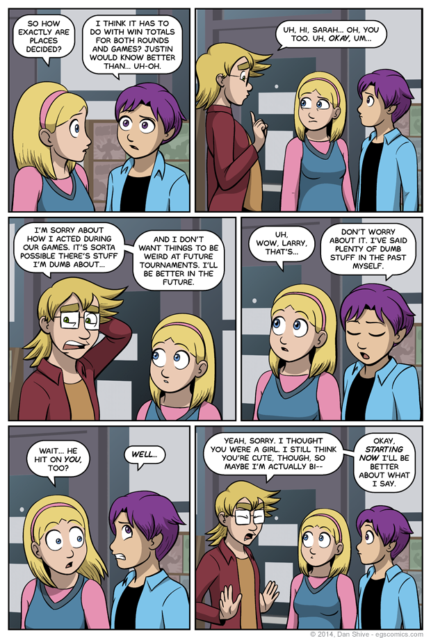 El Goonish Shive Introductions The Goo Shade, Part 1 Q&A #1 Shade, Part 2 Relations, Part 1 April Fools Week Relations, Part 2 Catnip Sister Part 1 - Open The Box Part 2 - Read The Rules Part 3 - Set Up The Pieces Part 4 - Play The Game Part 5 - Knock The Board Over Part 6 - Scattered Pieces Part 7 - Fist Fight Part 8 - Clean Up New And Old Friends Flipping Cardboard Lady Mysterious II slooF lirpA Squirrel Diplomacy Lunchtable Revelations Night Out Part 1 - Martial Arts Crew Part 2 - Elliot's Crew Part 3 - Ellen's Crew The Morning After Q&A #2 Tam Eh Tedd Painted Black Part 1 - Walk In The Park Part 2 - Missing Persons Part 3 - Interviewed By The Devil Part 4 - Into The Dungeon Part 5 - The Truth About Grace Part 6 - The Brewing Storm Part 7 - Fallen From Grace Part 8 - Humanity PB Special Features Shadows After Dark Sleepy Time Second Life The Child Left Behind Red Alert Before The Party Moping Squirrel Intro to South Party Recruiting Even More Recruiting Party Fashion Family Reuinion Grace's Birthday Party Part 1 - Arrivals And Presents Part 2 - Bending Genders Part 3 - Festivities Part 4 - Hold On Hope The After Party Q&A #3 Hidden Genesis Hidden Genesis In The Shadows The New Students Susan Draws The Line Squirrel In The Classroom Sister 2 Part 1 - The Trials Of Susan Part 2 - The Statue Part 3 - Pent-Up Magic Part 4 - Evil Monkey Part 5 - Moperville News Part 6 - Weregirl Part 7 - The Dark Clouds Gather Part 8 - Talon vs. Scythe Part 9 - Wrath of God Part 10 - Pandoras Box Q&A #4 Q&A #4 Bringing Silly Back Indiana Elliot And The TOSF T-Minus The Demon Ally Hammerchlorians - 1 Hammerchlorians - 2 Hammerchlorians - 3 T-Minus Dark Allegiance New And Old Flames - 1 New And Old Flames - 2 New And Old Flames - 3 New And Old Flames - 4 New And Old Flames - 5 New And Old Flames - 6 Q&A #5 Q&A #5 9001% Serious One Way Road Legends of Celida Death Sentence - 1 Death Sentence - 2 Death Sentence - 3 Death Sentence - 4 Death Sentence - 5 What Is Love Summer The End Of Spring Power Fantasy Rocks Fall Nobody Is Hired Nepotism Hair By The Numbers Duel Of The Discs There Be Whales Here There Be Whales Here Pt 2 There Be Whales Here Pt 3 The Dawn End Of An Era End Of An Era pt 2 Family Tree Family Tree Part 2 - Arrival Family Tree Part 3 - Par-TAY Family Tree Part 4 - Weirdness Family Tree Part 5 - A Troll Family Tree Part 6 - Banhammered Family Tree Part 7 - Hangover Q&A #6 Identity Identity Part 2 - Reactions Identity Part 3 - Cat Attack Identity Part 4 - Detective Sarah Identity Part 5 - Basement Chat Identity Part 6 - ILLOGICAL! Identity Part 7 - Dreams identity Part 8 - Ashley Identity Part 9 - Detective Susan Identity Part 10 - Ashley and Elliot Identity Part 11 - Epilogue Summer Moments Guest Comics Guest Comics #1 Guest Comics #2 Pandoras Box Squirrel Prophet SP - Part 2 SP - Final Battle So A Date At The Mall So A Date - Part 2 So A Date - Part 3 So A Date - Part 4 So A Date - Part 5 EGSNP - Question Mark Q&A 7 - The Requestioning Sister 3 - Catspaws Part 1 - Legacy Part 2 - The Will of Magic Part 3 - Reply Hazy Part 4 - Everyone Needs To Talk Part 5 - The Reservoir Part 6 - Maybe Sisters Part 7 - An Unkindness Part 8 - Awkwardness Ahead Part 9 - Traffic Freeze Part 10 - Fluidity Part 11 - All Of The Curse Words Part 12 - Misanthropy Part 13 - In Search Of Wisdom Part 14 - Sister Anxiety Part 15 - Elliot and Ellen Part 16 - BFFs Part 17 - Great Fairy Godmother Part 18 - Gathering Monsters Part 19 - Family Meetings Part 20 - Geminis Part 21 - The Other Dunkel Part 22 - Apocalypse Part 23 - The Fate Of Magic Part 24 - Elliots And Ellens Part 25 - Changes Part 26 - Epilogues The New World The Legend of Diane The Secret of Sam Q&A 8 - The Lord Of The Q&As Title Pending Title Pending 2 - Even More Pending Title Pending 3 - Untitled Party Title Pending 5 or 6 Balance Part 1 Part 2 Part 2-B Part 3 Part 4 Part 5 Part 6 Part 7 Part 8 Part 9 The Road Ahead Brother Father Our Future Recruitment Layers, Part 1 Layers, Part 2 Layers, Part 3 Layers, Part 4 Hope, Part 1 Hope, Part 2 Hope, Part 3 Hope, Part 4 Hope, Part 5 Hope, Part 6 Hope, Part 7 Hope, Part 8 Hope, Part 9 Hope, Part 10 Hope, Part 11 Hope, Part 12 False Kings False Kings, Part 1 False Kings, Part 2 False Kings, Part 3 False Kings, Part 4