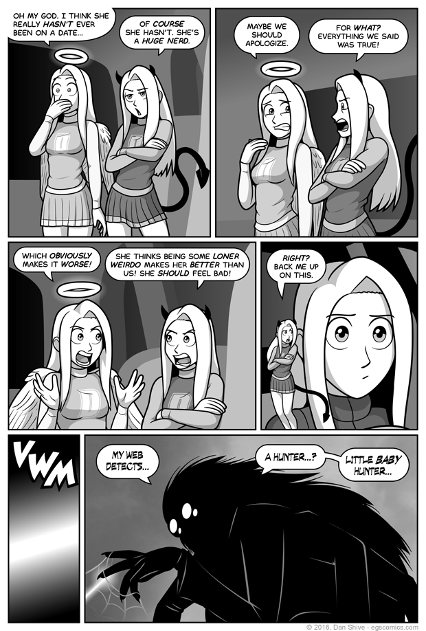 El Goonish Shive Introductions The Goo Shade, Part 1 Q&A #1 Shade, Part 2 Relations, Part 1 April Fools Week Relations, Part 2 Catnip Sister Part 1 - Open The Box Part 2 - Read The Rules Part 3 - Set Up The Pieces Part 4 - Play The Game Part 5 - Knock The Board Over Part 6 - Scattered Pieces Part 7 - Fist Fight Part 8 - Clean Up New And Old Friends Flipping Cardboard Lady Mysterious II slooF lirpA Squirrel Diplomacy Lunchtable Revelations Night Out Part 1 - Martial Arts Crew Part 2 - Elliot's Crew Part 3 - Ellen's Crew The Morning After Q&A #2 Tam Eh Tedd Painted Black Part 1 - Walk In The Park Part 2 - Missing Persons Part 3 - Interviewed By The Devil Part 4 - Into The Dungeon Part 5 - The Truth About Grace Part 6 - The Brewing Storm Part 7 - Fallen From Grace Part 8 - Humanity PB Special Features Shadows After Dark Sleepy Time Second Life The Child Left Behind Red Alert Before The Party Moping Squirrel Intro to South Party Recruiting Even More Recruiting Party Fashion Family Reuinion Grace's Birthday Party Part 1 - Arrivals And Presents Part 2 - Bending Genders Part 3 - Festivities Part 4 - Hold On Hope The After Party Q&A #3 Hidden Genesis Hidden Genesis In The Shadows The New Students Susan Draws The Line Squirrel In The Classroom Sister 2 Part 1 - The Trials Of Susan Part 2 - The Statue Part 3 - Pent-Up Magic Part 4 - Evil Monkey Part 5 - Moperville News Part 6 - Weregirl Part 7 - The Dark Clouds Gather Part 8 - Talon vs. Scythe Part 9 - Wrath of God Part 10 - Pandoras Box Q&A #4 Q&A #4 Bringing Silly Back Indiana Elliot And The TOSF T-Minus The Demon Ally Hammerchlorians - 1 Hammerchlorians - 2 Hammerchlorians - 3 T-Minus Dark Allegiance New And Old Flames - 1 New And Old Flames - 2 New And Old Flames - 3 New And Old Flames - 4 New And Old Flames - 5 New And Old Flames - 6 Q&A #5 Q&A #5 9001% Serious One Way Road Legends of Celida Death Sentence - 1 Death Sentence - 2 Death Sentence - 3 Death Sentence - 4 Death Sentence - 5 What Is Love Summer The End Of Spring Power Fantasy Rocks Fall Nobody Is Hired Nepotism Hair By The Numbers Duel Of The Discs There Be Whales Here There Be Whales Here Pt 2 There Be Whales Here Pt 3 The Dawn End Of An Era End Of An Era pt 2 Family Tree Family Tree Part 2 - Arrival Family Tree Part 3 - Par-TAY Family Tree Part 4 - Weirdness Family Tree Part 5 - A Troll Family Tree Part 6 - Banhammered Family Tree Part 7 - Hangover Q&A #6 Identity Identity Part 2 - Reactions Identity Part 3 - Cat Attack Identity Part 4 - Detective Sarah Identity Part 5 - Basement Chat Identity Part 6 - ILLOGICAL! Identity Part 7 - Dreams identity Part 8 - Ashley Identity Part 9 - Detective Susan Identity Part 10 - Ashley and Elliot Identity Part 11 - Epilogue Summer Moments Guest Comics Guest Comics #1 Guest Comics #2 Pandoras Box Squirrel Prophet SP - Part 2 SP - Final Battle So A Date At The Mall So A Date - Part 2 So A Date - Part 3 So A Date - Part 4 So A Date - Part 5 EGSNP - Question Mark Q&A 7 - The Requestioning Sister 3 - Catspaws Part 1 - Legacy Part 2 - The Will of Magic Part 3 - Reply Hazy Part 4 - Everyone Needs To Talk Part 5 - The Reservoir Part 6 - Maybe Sisters Part 7 - An Unkindness Part 8 - Awkwardness Ahead Part 9 - Traffic Freeze Part 10 - Fluidity Part 11 - All Of The Curse Words Part 12 - Misanthropy Part 13 - In Search Of Wisdom Part 14 - Sister Anxiety Part 15 - Elliot and Ellen Part 16 - BFFs Part 17 - Great Fairy Godmother Part 18 - Gathering Monsters Part 19 - Family Meetings Part 20 - Geminis Part 21 - The Other Dunkel Part 22 - Apocalypse Part 23 - The Fate Of Magic Part 24 - Elliots And Ellens Part 25 - Changes Part 26 - Epilogues The New World The Legend of Diane The Secret of Sam Q&A 8 - The Lord Of The Q&As Title Pending Title Pending 2 - Even More Pending Title Pending 3 - Untitled Party Title Pending 5 or 6 Balance Part 1 Part 2 Part 2-B Part 3 Part 4 Part 5 Part 6 Part 7 Part 8 Part 9 The Road Ahead Brother Father Our Future Recruitment Layers, Part 1 Layers, Part 2 Layers, Part 3 Layers, Part 4 Hope, Part 1 Hope, Part 2 Hope, Part 3 Hope, Part 4 Hope, Part 5 Hope, Part 6 Hope, Part 7 Hope, Part 8 Hope, Part 9 Hope, Part 10 Hope, Part 11 Hope, Part 12 False Kings False Kings, Part 1 False Kings, Part 2 False Kings, Part 3 False Kings, Part 4
