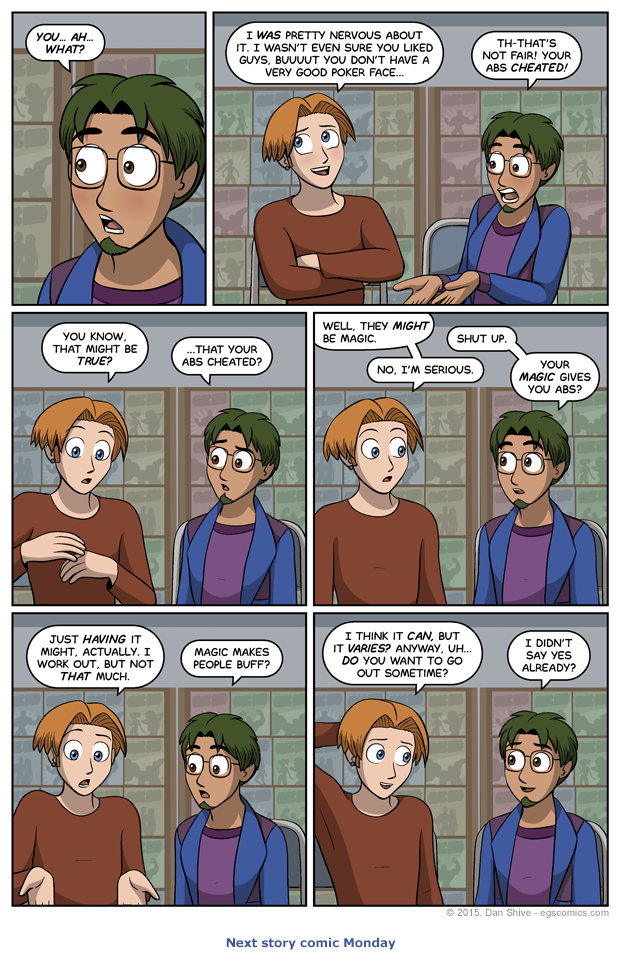 That aside, yay for Luke saying yes to a date! Sort of. I mean, it's clearly implied, right? Except some people are going to want it to be more certain. Any room for doubt will enrage them. They will send e-mail upon e-mail asking if Luke said yes until it is stated within the comic itself without any ambiguity and made canon, and their wrath shall be upon me due to my foolish effort for their courtship to be adorables and YE GODS WHAT HAVE I WROUGHT?!