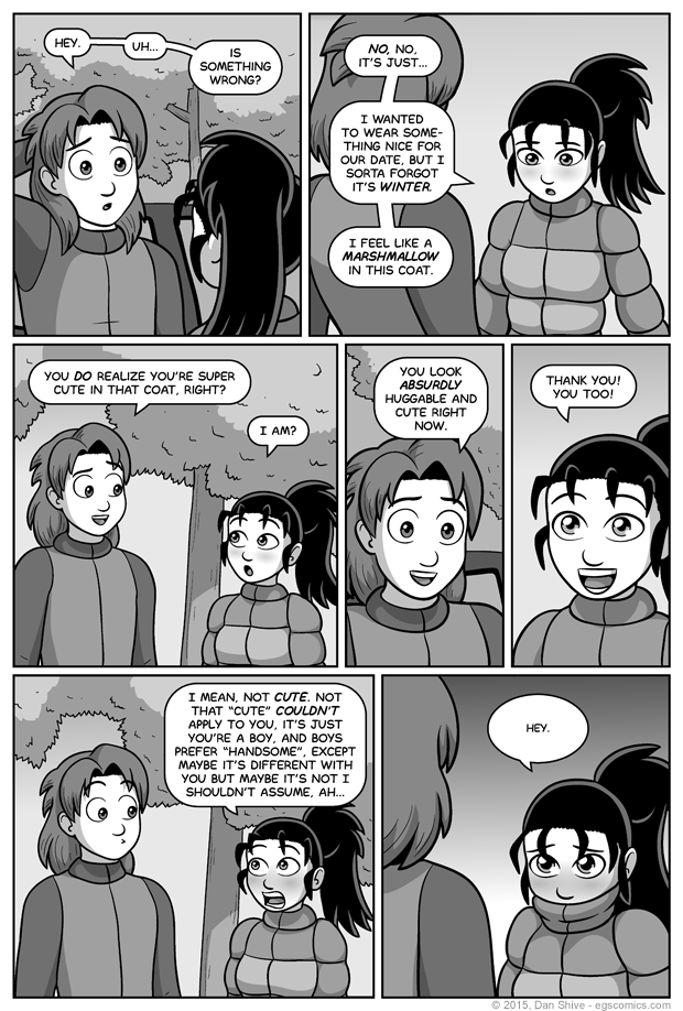 I was concerned about Elliot not saying anything in the second to last panel, but sometimes it's difficult to think of a response to someone rambling about how not cute but cute you are.