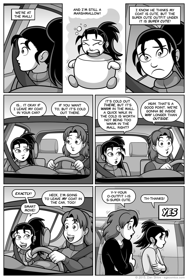 There are times when it's probably a bad idea to leave enticing valuables such as super cute marshmallow coats in one's car, but I've done this at times. My car keeps me pretty dang warm, and I expect most places I go to be warm, so I've gone places without even taking a coat when it's been somewhat cold out.