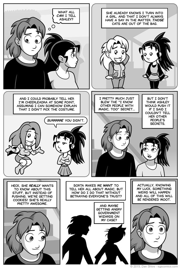 In case it's not obvious by now, I've grown to prefer the button-eyed chibis character models for, well, chibi panels. While it's more difficult to make it apparent where they're looking without BETRAYING! the style, there's a strong contrast between it and the normal style, and there's not much point to going chibi if it doesn't stand out.