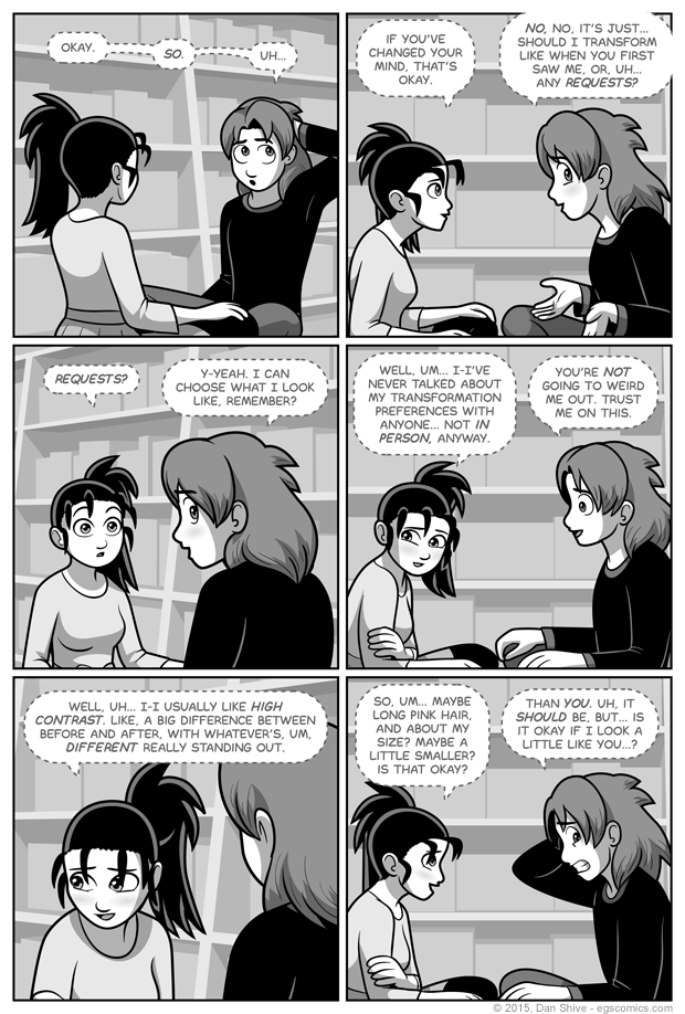 1776 is apparently an important year for the United States and an important ID number in the EGS archives. Unless of course I use a different system later, in which case the comic with Ashley seeing Elliot transform for the first time could have a completely different number or something else entirely assigned to it, and this will become SUPER CONFUSING.