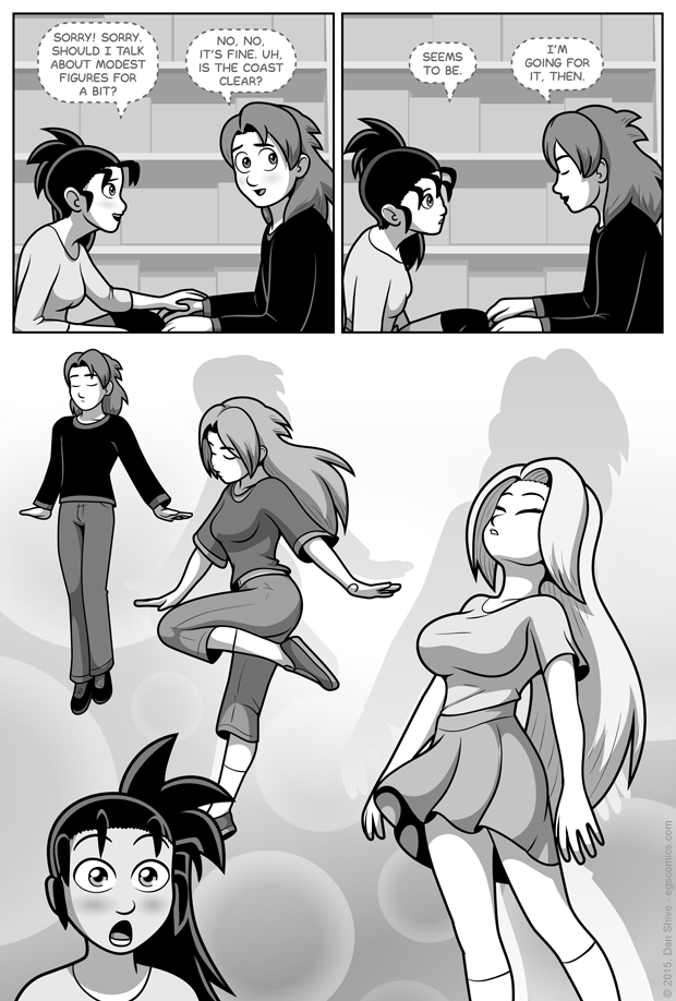 In all seriousness, I didn't want to simply show Elliot trasnsforming while sitting, but that's what he'd have to do to keep a low profile in the store, so I made like Sailor Moon and threw in a fancy stock transformation (sort of).
