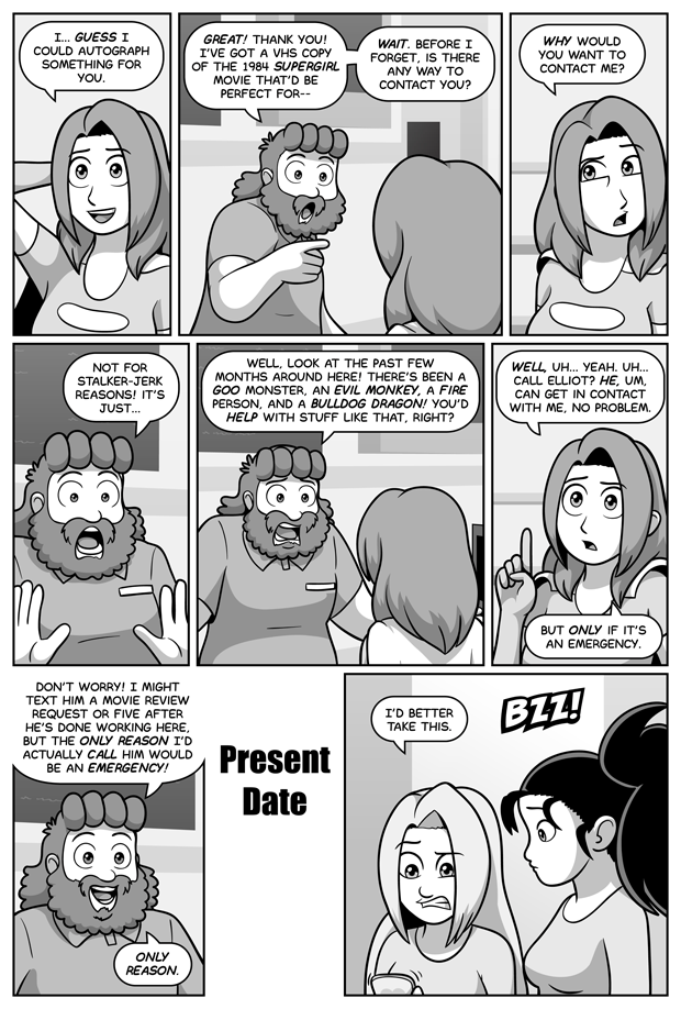 Given Elliot's reaction, Tensaided's apparently been good to his word on that. Well, at least the "not calling Elliot unless it's an emergency" part. I sincerely doubt he's kept his movie suggestion text messages to only one or five.