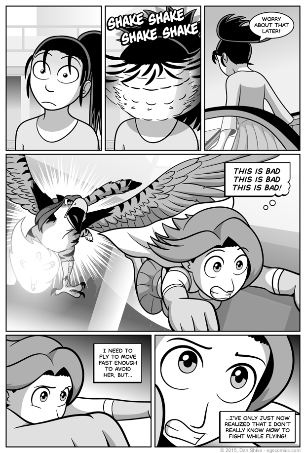 Elliot not really knowing how to fight while flying makes sense and I could explain it, but I'm planning to address that in-comic rather than just assume everyone either reads these commentaries or can figure it out for themselves. As such, feel free to speculate why that would be the case before Monday (or pushing the "next" button if reading this in the distant space future).
