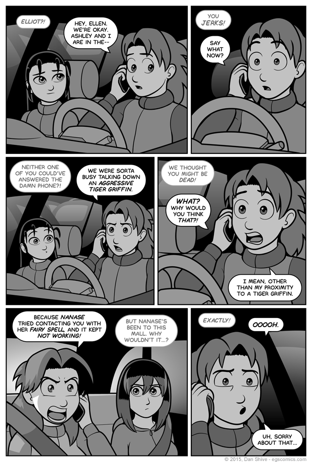 Speaking of which, I had originally planned a simple "well, that's weird" sort of conversation about the spell not working, but then I considered other possible explanations one might reach, and here are. Granted, Elliot's excuse is kinda sorta super valid, but you try telling a sufficiently upset person to be reasonable.