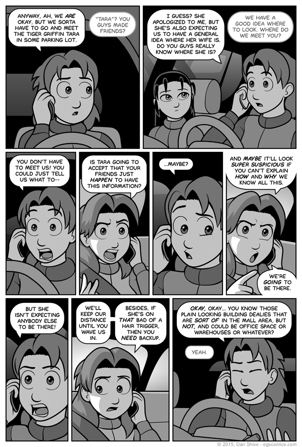 The last panel is inspired by how I would describe the real life area I know of that inspired where they're going to meet Tara the griffin, and Ellen knows what Elliot means by that description because of course she does.