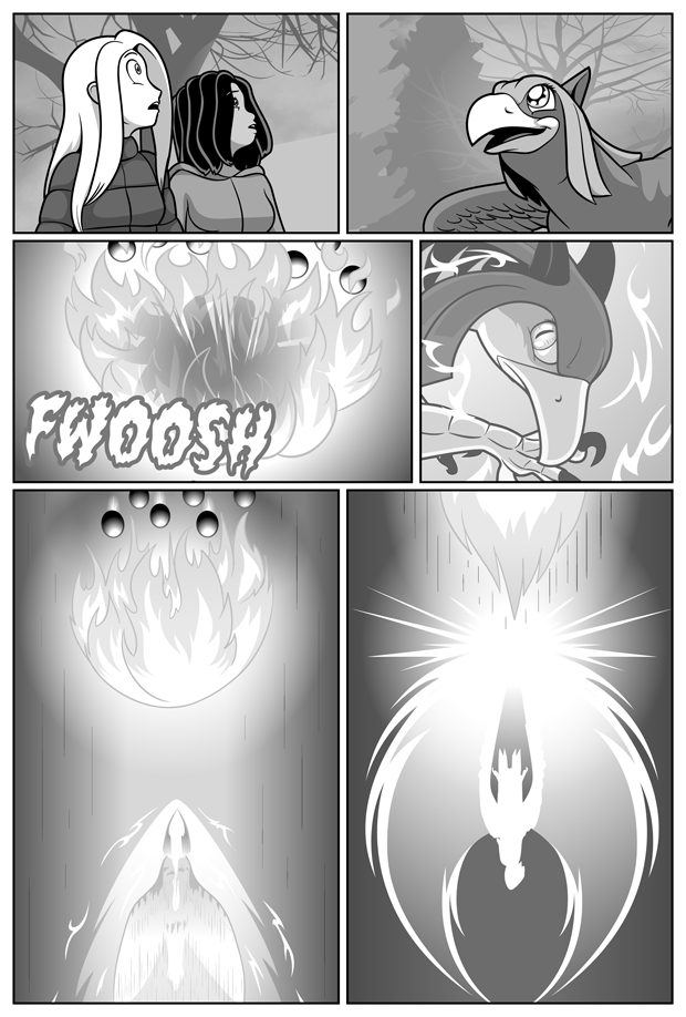 The lack of sound effects in the last three panels is the result of me not wanting to cover up any of the parts of the panels that I would need to, so... Nope! I sorta like the effect, anyway.