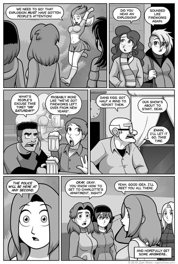 And now on to actual commentary! Ashley's firework comment from the previous comic (incidentally, there was a previous comic with Ashley in it and it was on a Friday) was not just a throwaway gag, and it's inspired by the tendency around where I live for people to find seemingly any excuse to use fireworks.