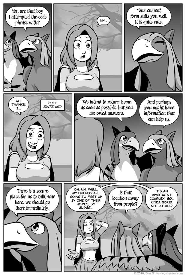 Part of me wants to have WAY more dialogue here, covering every character's full reactions in detail. This is the part of me that is most likely responsible for the fact that the comic in which Tara first brings up the code phrase was apparently 68 comics ago.