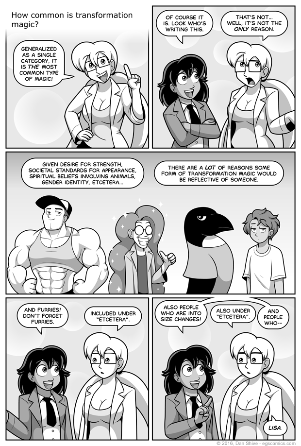 The middle panel was originally going to have a woman with an exaggerated figure, a werewolf, and... Well, actually, I hadn't thought as far ahead as how I was going to handle the gender identity representation and just wound up drawing someone I consider androgynous.