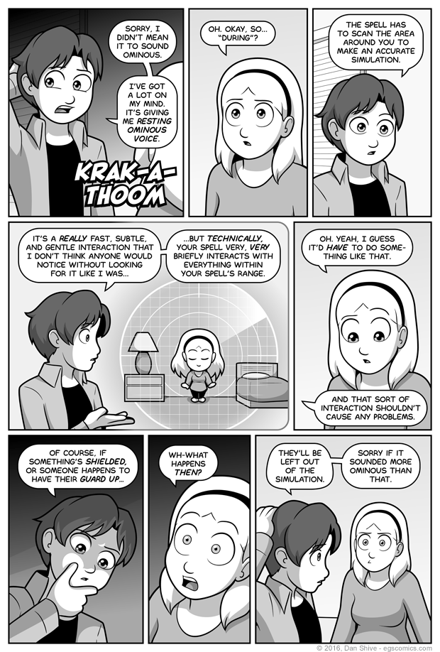 In which I include a loophole allowing me to have characters be nearby when Sarah uses her spell without her knowing about it.