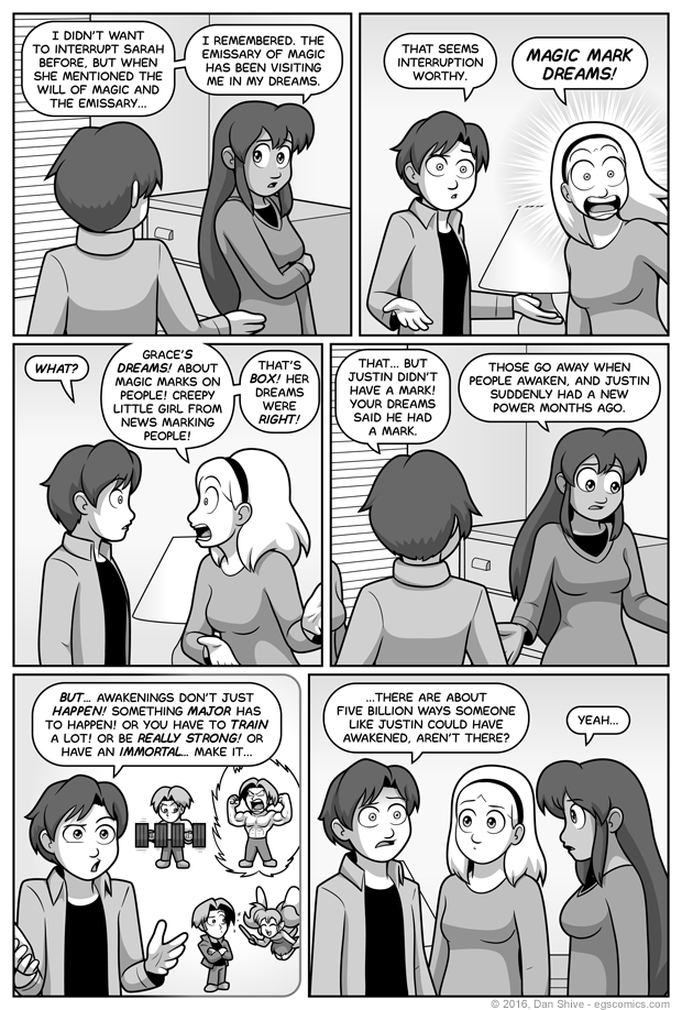 El Goonish Shive Introductions The Goo Shade, Part 1 Q&A #1 Shade, Part 2 Relations, Part 1 April Fools Week Relations, Part 2 Catnip Sister Part 1 - Open The Box Part 2 - Read The Rules Part 3 - Set Up The Pieces Part 4 - Play The Game Part 5 - Knock The Board Over Part 6 - Scattered Pieces Part 7 - Fist Fight Part 8 - Clean Up New And Old Friends Flipping Cardboard Lady Mysterious II slooF lirpA Squirrel Diplomacy Lunchtable Revelations Night Out Part 1 - Martial Arts Crew Part 2 - Elliot's Crew Part 3 - Ellen's Crew The Morning After Q&A #2 Tam Eh Tedd Painted Black Part 1 - Walk In The Park Part 2 - Missing Persons Part 3 - Interviewed By The Devil Part 4 - Into The Dungeon Part 5 - The Truth About Grace Part 6 - The Brewing Storm Part 7 - Fallen From Grace Part 8 - Humanity PB Special Features Shadows After Dark Sleepy Time Second Life The Child Left Behind Red Alert Before The Party Moping Squirrel Intro to South Party Recruiting Even More Recruiting Party Fashion Family Reuinion Grace's Birthday Party Part 1 - Arrivals And Presents Part 2 - Bending Genders Part 3 - Festivities Part 4 - Hold On Hope The After Party Q&A #3 Hidden Genesis Hidden Genesis In The Shadows The New Students Susan Draws The Line Squirrel In The Classroom Sister 2 Part 1 - The Trials Of Susan Part 2 - The Statue Part 3 - Pent-Up Magic Part 4 - Evil Monkey Part 5 - Moperville News Part 6 - Weregirl Part 7 - The Dark Clouds Gather Part 8 - Talon vs. Scythe Part 9 - Wrath of God Part 10 - Pandoras Box Q&A #4 Q&A #4 Bringing Silly Back Indiana Elliot And The TOSF T-Minus The Demon Ally Hammerchlorians - 1 Hammerchlorians - 2 Hammerchlorians - 3 T-Minus Dark Allegiance New And Old Flames - 1 New And Old Flames - 2 New And Old Flames - 3 New And Old Flames - 4 New And Old Flames - 5 New And Old Flames - 6 Q&A #5 Q&A #5 9001% Serious One Way Road Legends of Celida Death Sentence - 1 Death Sentence - 2 Death Sentence - 3 Death Sentence - 4 Death Sentence - 5 What Is Love Summer The End Of Spring Power Fantasy Rocks Fall Nobody Is Hired Nepotism Hair By The Numbers Duel Of The Discs There Be Whales Here There Be Whales Here Pt 2 There Be Whales Here Pt 3 The Dawn End Of An Era End Of An Era pt 2 Family Tree Family Tree Part 2 - Arrival Family Tree Part 3 - Par-TAY Family Tree Part 4 - Weirdness Family Tree Part 5 - A Troll Family Tree Part 6 - Banhammered Family Tree Part 7 - Hangover Q&A #6 Identity Identity Part 2 - Reactions Identity Part 3 - Cat Attack Identity Part 4 - Detective Sarah Identity Part 5 - Basement Chat Identity Part 6 - ILLOGICAL! Identity Part 7 - Dreams identity Part 8 - Ashley Identity Part 9 - Detective Susan Identity Part 10 - Ashley and Elliot Identity Part 11 - Epilogue Summer Moments Guest Comics Guest Comics #1 Guest Comics #2 Pandoras Box Squirrel Prophet SP - Part 2 SP - Final Battle So A Date At The Mall So A Date - Part 2 So A Date - Part 3 So A Date - Part 4 So A Date - Part 5 EGSNP - Question Mark Q&A 7 - The Requestioning Sister 3 - Catspaws Part 1 - Legacy Part 2 - The Will of Magic Part 3 - Reply Hazy Part 4 - Everyone Needs To Talk Part 5 - The Reservoir Part 6 - Maybe Sisters Part 7 - An Unkindness Part 8 - Awkwardness Ahead Part 9 - Traffic Freeze Part 10 - Fluidity Part 11 - All Of The Curse Words Part 12 - Misanthropy Part 13 - In Search Of Wisdom Part 14 - Sister Anxiety Part 15 - Elliot and Ellen Part 16 - BFFs Part 17 - Great Fairy Godmother Part 18 - Gathering Monsters Part 19 - Family Meetings Part 20 - Geminis Part 21 - The Other Dunkel Part 22 - Apocalypse Part 23 - The Fate Of Magic Part 24 - Elliots And Ellens Part 25 - Changes Part 26 - Epilogues The New World The Legend of Diane The Secret of Sam Q&A 8 - The Lord Of The Q&As Title Pending Title Pending 2 - Even More Pending Title Pending 3 - Untitled Party Title Pending 5 or 6 Balance Part 1 Part 2 Part 2-B Part 3 Part 4 Part 5 Part 6 Part 7 Part 8 Part 9 The Road Ahead Brother Father Our Future Recruitment Layers, Part 1 Layers, Part 2 Layers, Part 3 Layers, Part 4 Hope, Part 1 Hope, Part 2 Hope, Part 3 Hope, Part 4 Hope, Part 5 Hope, Part 6 Hope, Part 7 Hope, Part 8 Hope, Part 9 Hope, Part 10 Hope, Part 11 Hope, Part 12 False Kings False Kings, Part 1 False Kings, Part 2 False Kings, Part 3 False Kings, Part 4