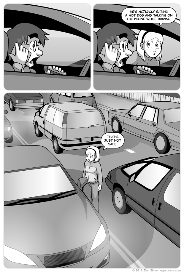 EDIT: The original version of this comic had the cars going the wrong ways on the wrong sides of the road. WHOOPS! Someone pointed this out to me, so I cleverly mirrored everything, but here's the original European version.