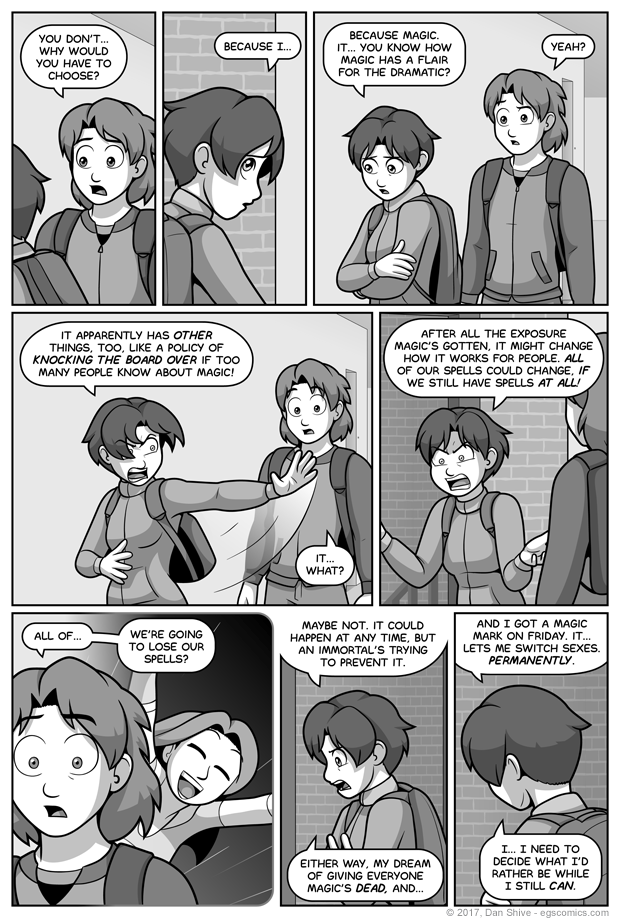Something I forgot to comment on in the previous comic was Elliot's comment about "did you forget you were transformed again?" I included this line because I'm not 100% sure whether I want the very first EGS:NP storyline, Tedd Forgot To Do Something, to be considered canon.