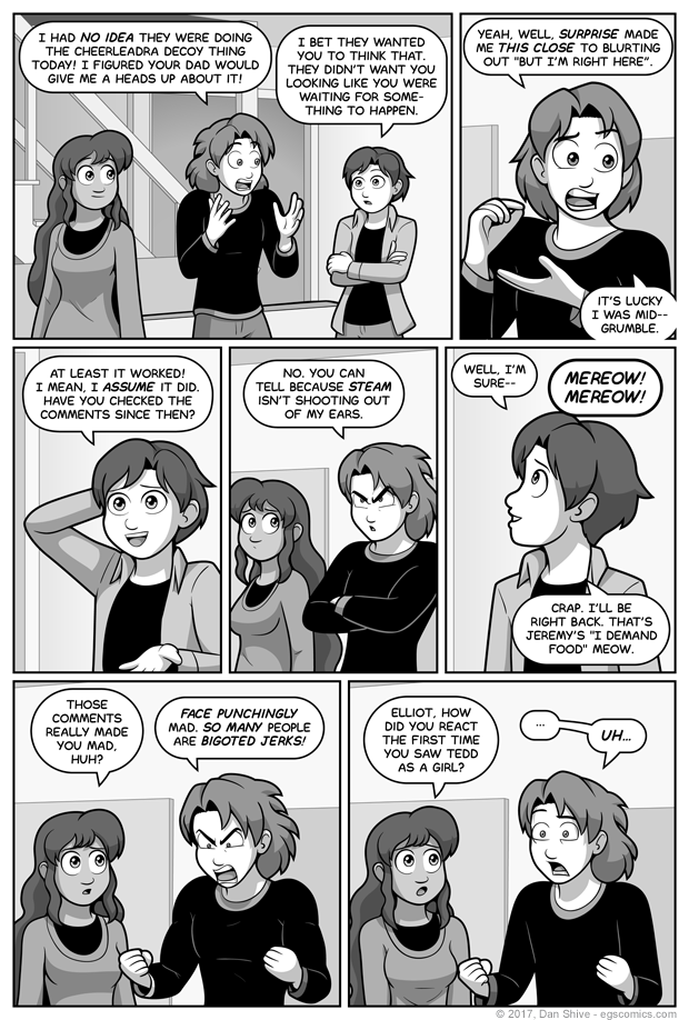 - What Elliot first says in response to seeing Tedd as a girl (that's not a joke about comedic eye-popping). Will also be repeated next comic.