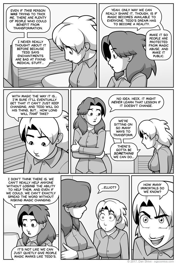 I originally referenced the Q&A about healing with the TF gun in the previous comic commentary, but I was jumping the TF gun a bit on that. THIS is the comic that addresses that whole deal, which is a mixture of actual logic and not wanting magic to be an over-powerful cure all that would be truly, truly horrible not to share.