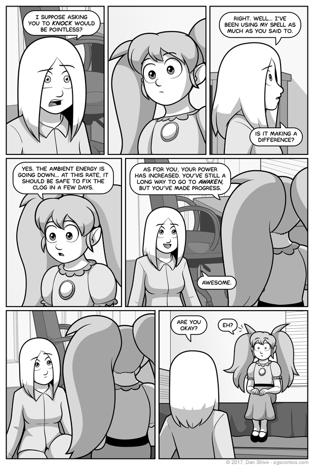 Anyway, it's late Thursday night, they should be able to fix the clog in a few days, and Sarah's power has increased what is likely a very small amount! Fantastic. Everything's coming up Milhouse!