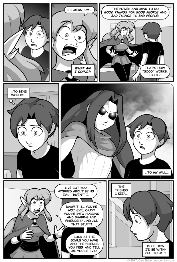 El Goonish Shive Introductions The Goo Shade, Part 1 Q&A #1 Shade, Part 2 Relations, Part 1 April Fools Week Relations, Part 2 Catnip Sister Part 1 - Open The Box Part 2 - Read The Rules Part 3 - Set Up The Pieces Part 4 - Play The Game Part 5 - Knock The Board Over Part 6 - Scattered Pieces Part 7 - Fist Fight Part 8 - Clean Up New And Old Friends Flipping Cardboard Lady Mysterious II slooF lirpA Squirrel Diplomacy Lunchtable Revelations Night Out Part 1 - Martial Arts Crew Part 2 - Elliot's Crew Part 3 - Ellen's Crew The Morning After Q&A #2 Tam Eh Tedd Painted Black Part 1 - Walk In The Park Part 2 - Missing Persons Part 3 - Interviewed By The Devil Part 4 - Into The Dungeon Part 5 - The Truth About Grace Part 6 - The Brewing Storm Part 7 - Fallen From Grace Part 8 - Humanity PB Special Features Shadows After Dark Sleepy Time Second Life The Child Left Behind Red Alert Before The Party Moping Squirrel Intro to South Party Recruiting Even More Recruiting Party Fashion Family Reuinion Grace's Birthday Party Part 1 - Arrivals And Presents Part 2 - Bending Genders Part 3 - Festivities Part 4 - Hold On Hope The After Party Q&A #3 Hidden Genesis Hidden Genesis In The Shadows The New Students Susan Draws The Line Squirrel In The Classroom Sister 2 Part 1 - The Trials Of Susan Part 2 - The Statue Part 3 - Pent-Up Magic Part 4 - Evil Monkey Part 5 - Moperville News Part 6 - Weregirl Part 7 - The Dark Clouds Gather Part 8 - Talon vs. Scythe Part 9 - Wrath of God Part 10 - Pandoras Box Q&A #4 Q&A #4 Bringing Silly Back Indiana Elliot And The TOSF T-Minus The Demon Ally Hammerchlorians - 1 Hammerchlorians - 2 Hammerchlorians - 3 T-Minus Dark Allegiance New And Old Flames - 1 New And Old Flames - 2 New And Old Flames - 3 New And Old Flames - 4 New And Old Flames - 5 New And Old Flames - 6 Q&A #5 Q&A #5 9001% Serious One Way Road Legends of Celida Death Sentence - 1 Death Sentence - 2 Death Sentence - 3 Death Sentence - 4 Death Sentence - 5 What Is Love Summer The End Of Spring Power Fantasy Rocks Fall Nobody Is Hired Nepotism Hair By The Numbers Duel Of The Discs There Be Whales Here There Be Whales Here Pt 2 There Be Whales Here Pt 3 The Dawn End Of An Era End Of An Era pt 2 Family Tree Family Tree Part 2 - Arrival Family Tree Part 3 - Par-TAY Family Tree Part 4 - Weirdness Family Tree Part 5 - A Troll Family Tree Part 6 - Banhammered Family Tree Part 7 - Hangover Q&A #6 Identity Identity Part 2 - Reactions Identity Part 3 - Cat Attack Identity Part 4 - Detective Sarah Identity Part 5 - Basement Chat Identity Part 6 - ILLOGICAL! Identity Part 7 - Dreams identity Part 8 - Ashley Identity Part 9 - Detective Susan Identity Part 10 - Ashley and Elliot Identity Part 11 - Epilogue Summer Moments Guest Comics Guest Comics #1 Guest Comics #2 Pandoras Box Squirrel Prophet SP - Part 2 SP - Final Battle So A Date At The Mall So A Date - Part 2 So A Date - Part 3 So A Date - Part 4 So A Date - Part 5 EGSNP - Question Mark Q&A 7 - The Requestioning Sister 3 - Catspaws Part 1 - Legacy Part 2 - The Will of Magic Part 3 - Reply Hazy Part 4 - Everyone Needs To Talk Part 5 - The Reservoir Part 6 - Maybe Sisters Part 7 - An Unkindness Part 8 - Awkwardness Ahead Part 9 - Traffic Freeze Part 10 - Fluidity Part 11 - All Of The Curse Words Part 12 - Misanthropy Part 13 - In Search Of Wisdom Part 14 - Sister Anxiety Part 15 - Elliot and Ellen Part 16 - BFFs Part 17 - Great Fairy Godmother Part 18 - Gathering Monsters Part 19 - Family Meetings Part 20 - Geminis Part 21 - The Other Dunkel Part 22 - Apocalypse Part 23 - The Fate Of Magic Part 24 - Elliots And Ellens Part 25 - Changes Part 26 - Epilogues The New World The Legend of Diane The Secret of Sam Q&A 8 - The Lord Of The Q&As Title Pending Title Pending 2 - Even More Pending Title Pending 3 - Untitled Party Title Pending 5 or 6 Balance Part 1 Part 2 Part 2-B Part 3 Part 4 Part 5 Part 6 Part 7 Part 8 Part 9 The Road Ahead Brother Father Our Future Recruitment Layers, Part 1 Layers, Part 2 Layers, Part 3 Layers, Part 4 Hope, Part 1 Hope, Part 2 Hope, Part 3 Hope, Part 4 Hope, Part 5 Hope, Part 6 Hope, Part 7 Hope, Part 8 Hope, Part 9 Hope, Part 10 Hope, Part 11 Hope, Part 12 False Kings False Kings, Part 1 False Kings, Part 2 False Kings, Part 3 False Kings, Part 4
