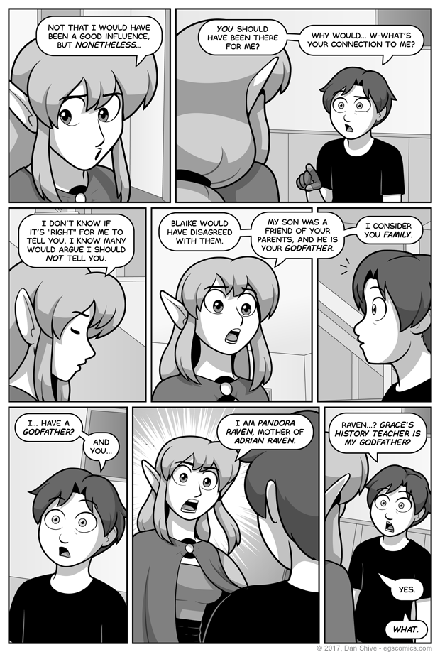 EDIT 2 - Pandora originally said "and he your godfather" between panels four and five, which I liked the sound of. Then someone corrected me on the missing "is", and just as I was about to tell them that was intentional, I saw a future in which I was being told about that missing "is" for all eternity. My mind was swiftly changed.