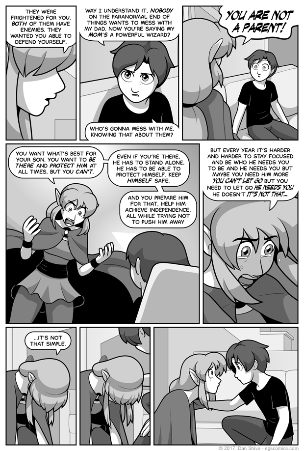 The lack of punctuation at end of panel four intentional, as I imagined basically no pause between that and what she says next. Not trying to explain so much as letting people who would kindly notify me of such errors that I am aware ;)