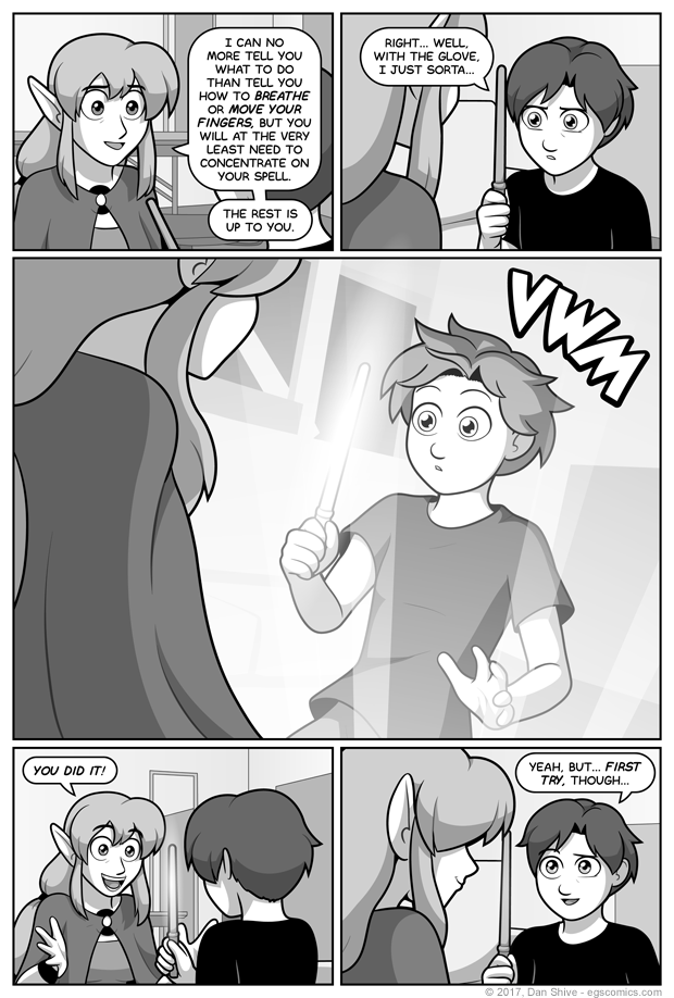 I would have preferred Pandora to say "wiggle your fingers" in the first panel, but you can totally describe the specific act of wiggling fingers. She needed to reference something basic and instinctive, and not anything that could truly be taught.