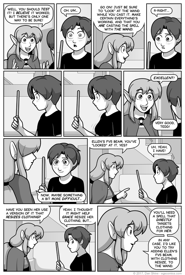 This page was originally going to end on "now, maybe something a bit more difficult...", but I decided I wanted to speed things up a bit, and that the page would've been a bit sparse in spite of being seven panels given that three of those panels would've been Tedd saying "r-right" followed by nearly identical panels of a very simple transformation.