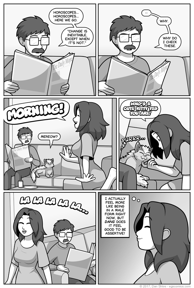 Panel four's dialogue may or may not actually have anything to do with Tedd brazenly acting "girly". Really, that's just how you talk to cats.