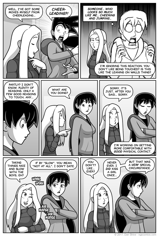 My one regret is that I found no way to include complaining about skirts in panel two that didn't feel like throwing off the timing of it.