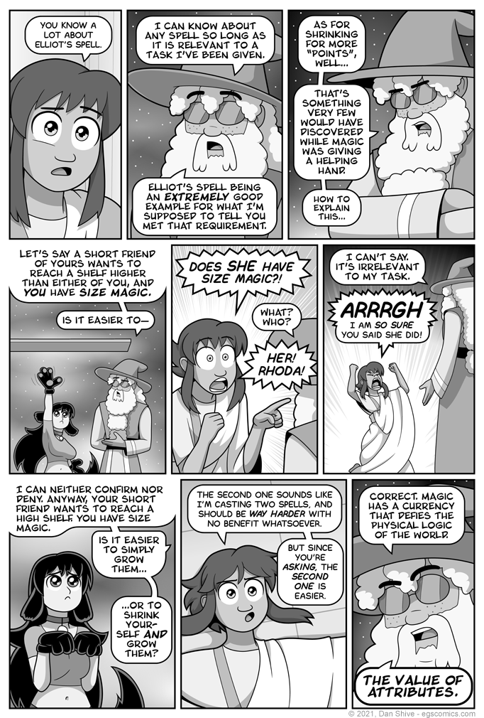 I was super annoyed by how bland it was, so it was rewrite time. I thought he could give a scenario to use size magic in, and, appropriately enough, that quickly grew into a massive snowball that ended with a grumpy Grace lying on her back.