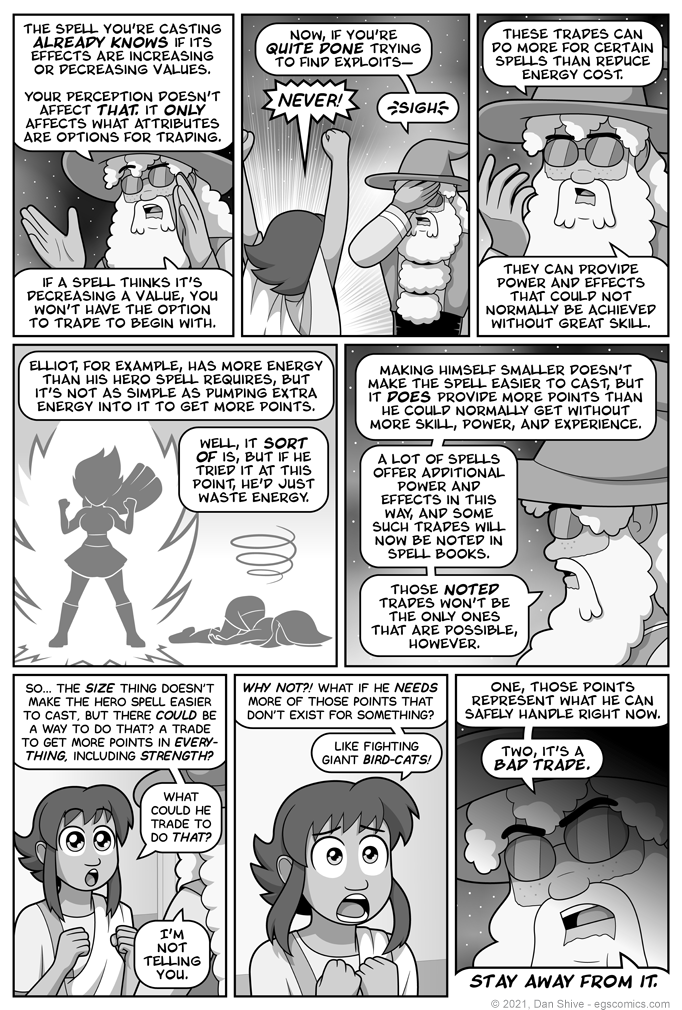Either way, we're done with long stretches of technical exposition in this arc. I don't care if that's a minor spoiler for Monday. We're done. DONE! If anything needs explaining, it will be shown working, or be just one or two panels somewhere!