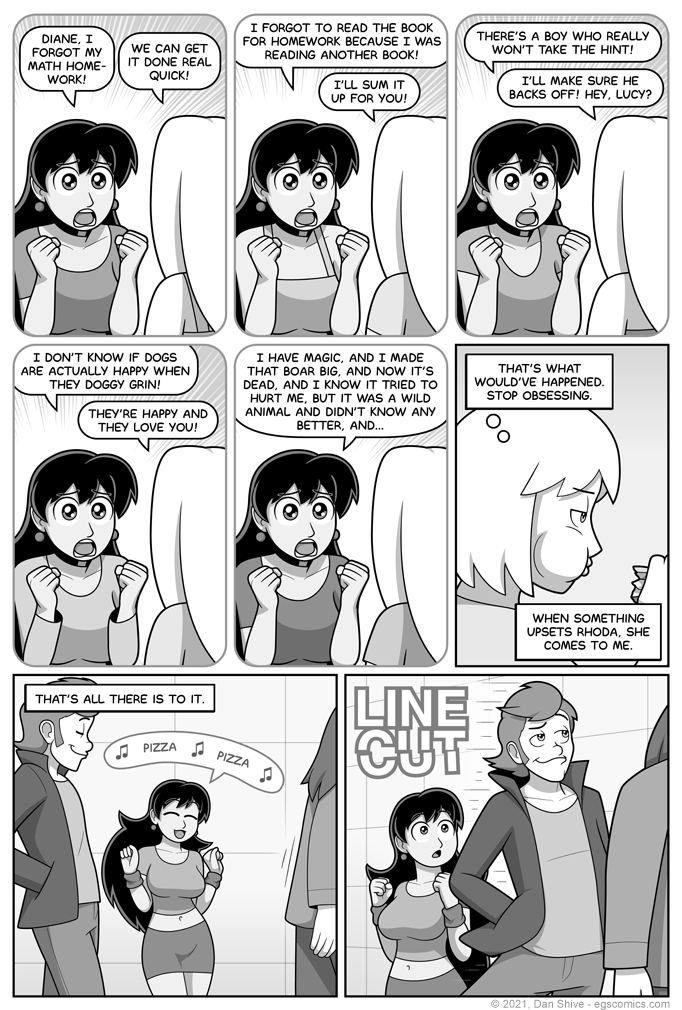 What, you think the narration saying Rhoda was off on her own to get pizza was just for world building?