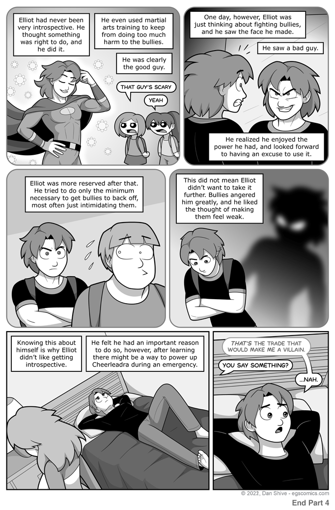 In spite of being a flashback story, I drew panel one Elliot as I would draw him in the present, just with longer hair.