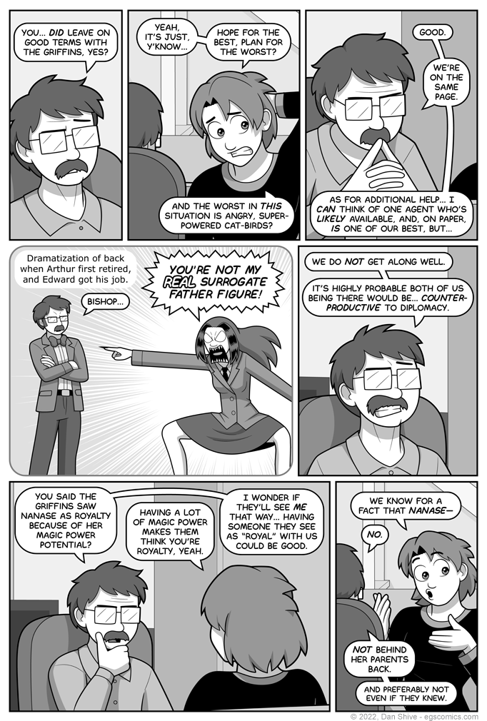 I didn't originally have younger Edward say "Bishop", but after I decided to draw younger Bishop as I did, I worried about people even recognizing her.