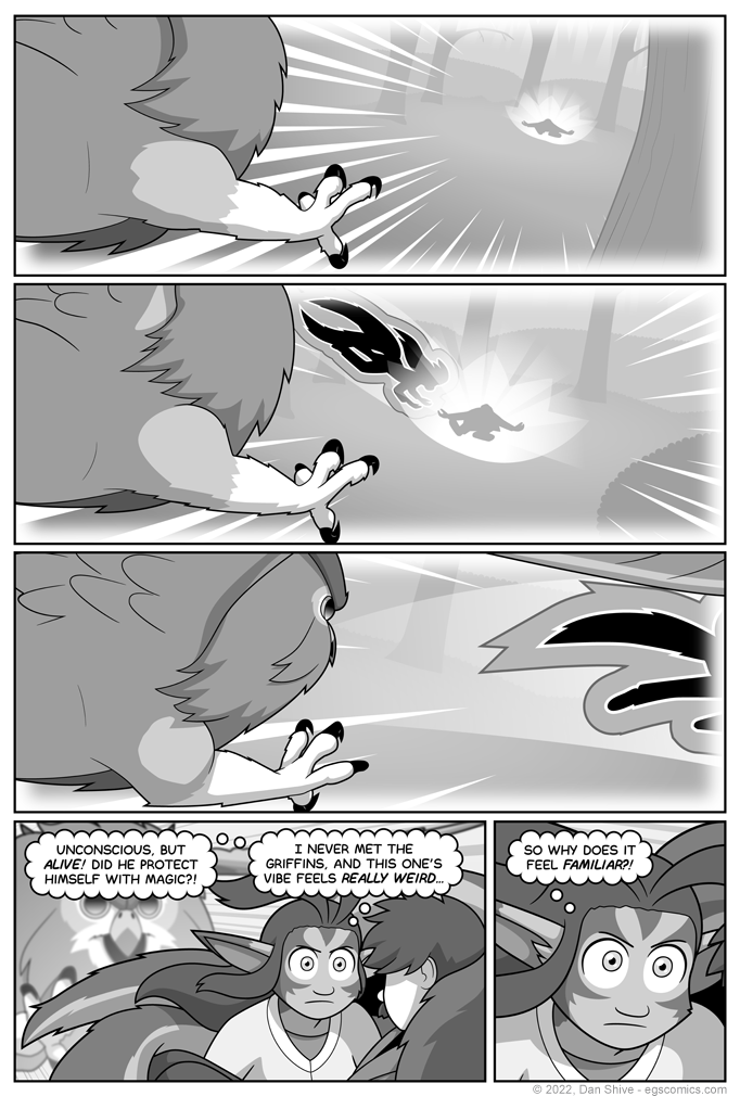 Granted, the glowing, and continued aggression of the griffin, were decent clues, but I'm trying to communicate clearly over here, and my goal isn't for people who don't read the commentary to be guessing about that.