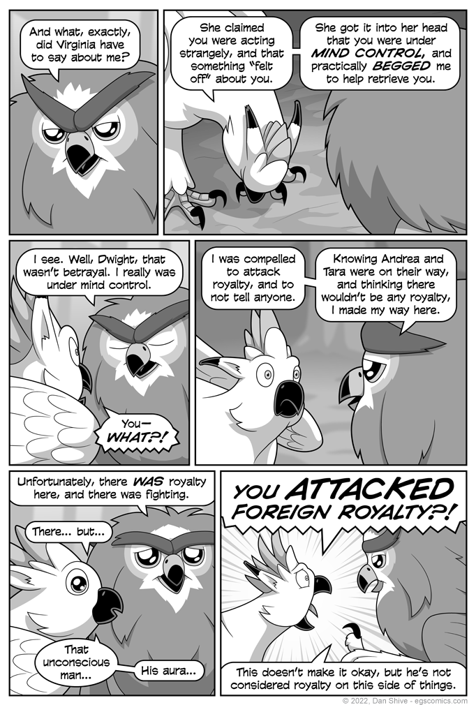 This page also has what I consider an odd mix of griffin gestures. To me, griffin bowing makes sense. It's a thing they can reasonably and naturally do as a form of expression, and it's not always convenient to swing wings around just to express something.