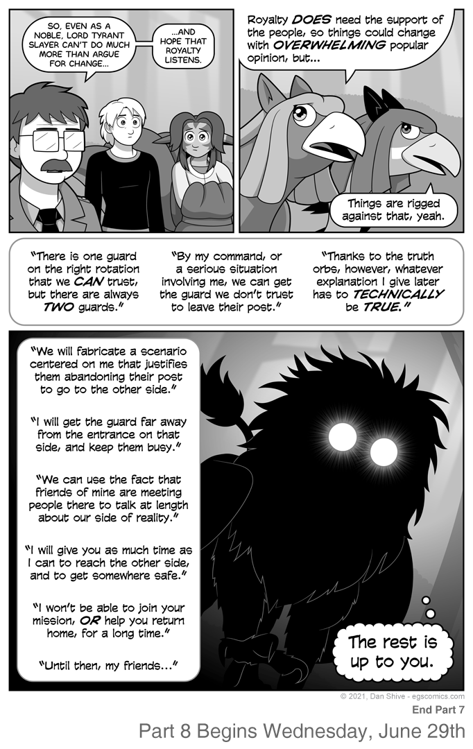 I look forward to Part 8, in which we finally, FINALLY get into the matter of magic, and the clogging thereof!