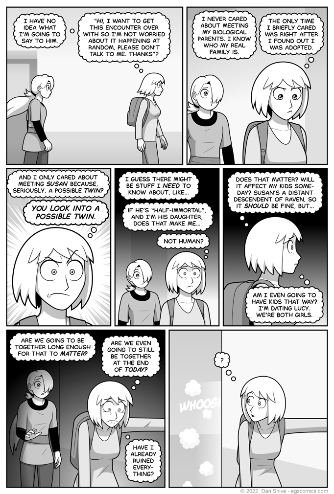 Being a little behind schedule plus dental appointment equals next page Wednesday. My apologies for that. Not for, you know, taking care of my teeth, but not being more ahead on things.