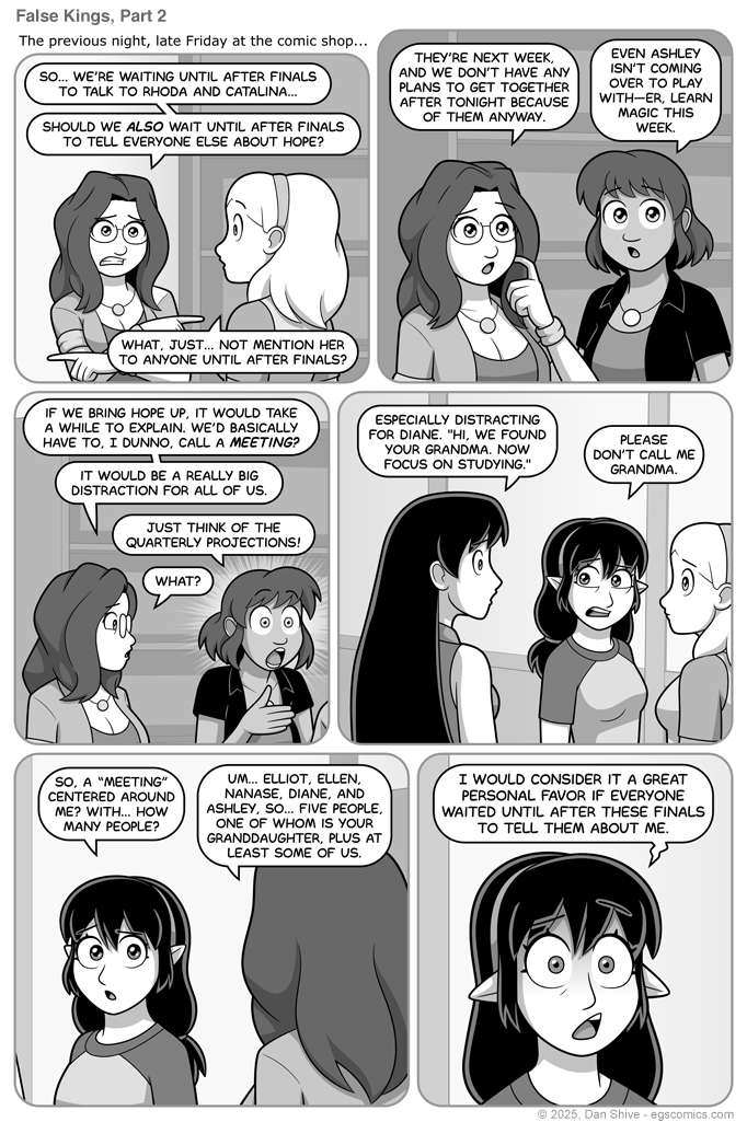 This would have had to have happened sometime after the decision to wait to talk to Rhoda and Catalina in part 12 of the Hope arc. I didn't have the moment written in any sort of detail, but I did consider including it at the time.
