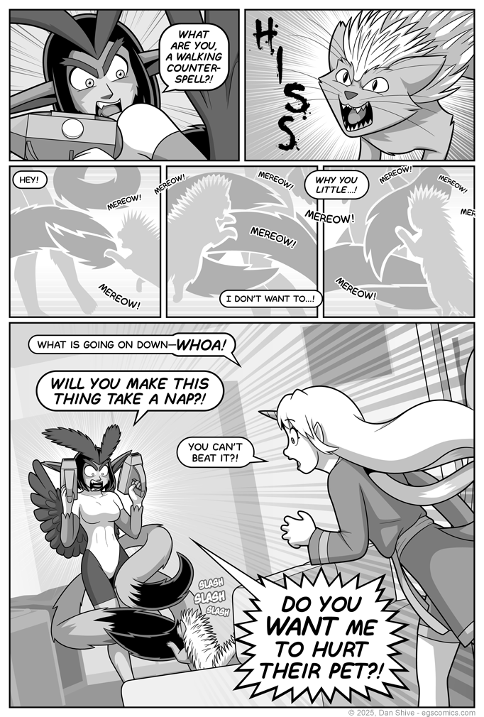 Has her struggle against a housecat.