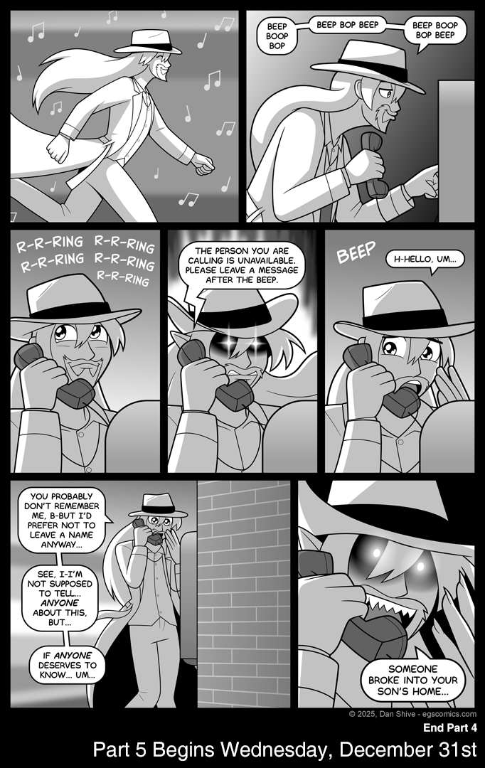 Then he totally broke the physical aspect of it to look spooky in the last panel, but I wasn't going to end part 4 on Voltaire making a nervous face! Heavens, no!