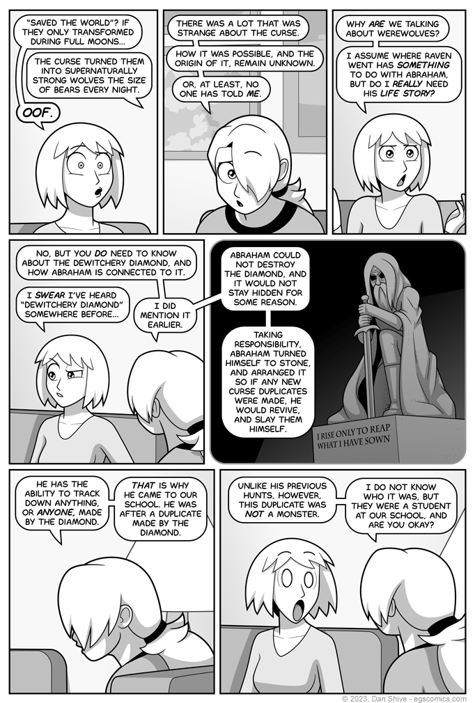 In this case, I was taking for granted that people knew that these werewolves transformed every night. I did sort of establish it back in 2002 when the werewolves were first mentioned, but it was a quick "with the setting of every sun" line on that journal page I referenced last Friday.