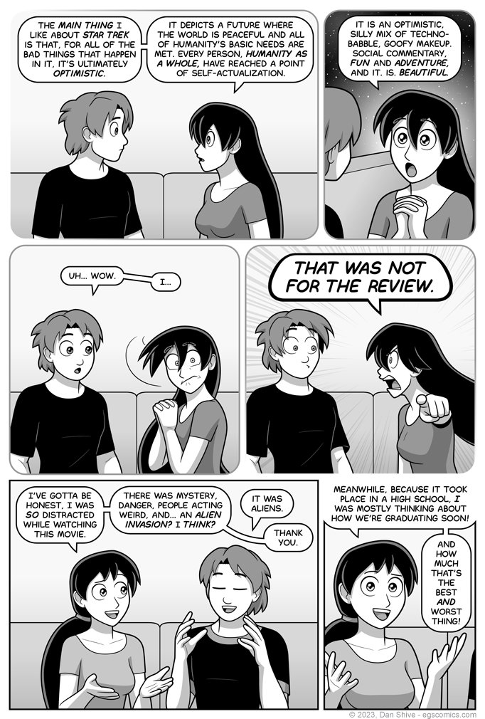 I felt the best way to show what I want to show here with Susan was to contrast it with Susan and Elliot's very first movie review, so no, I was not simply being lazy by redoing four panels from the past!