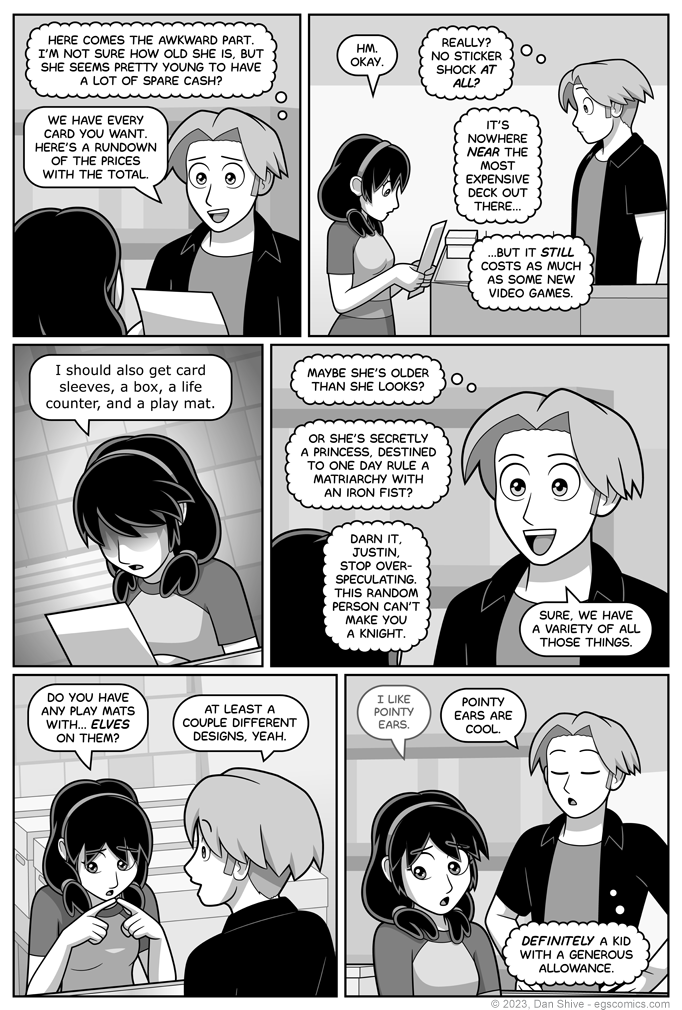I had fun with Justin's thoughts on this page, and for anyone wondering authorial intent, no, I did not intend for Justin to seriously think Hope's a princess. Justin is simply snarky at times, even with himself.
