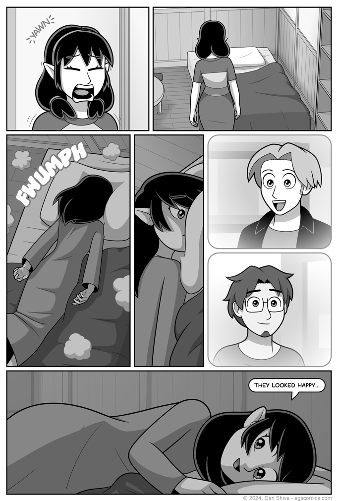 For the record, authorial intent was there's no scene missing between panels two and three. Hope is just suddenly in pajamas, and the room has less light.