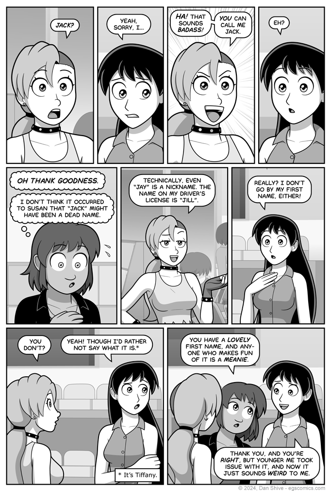 The reveal of Grace's concern about Susan saying "Jack" was originally included on the previous page, and was done in three panels. This made that page super dense and busy, however, so I moved that to this page.