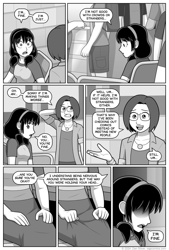 Had I infinite time, energy, and a swarm of loyal artistic squirrel minions, panel two would have been a wide shot showing absolutely everyone in the comic shop.